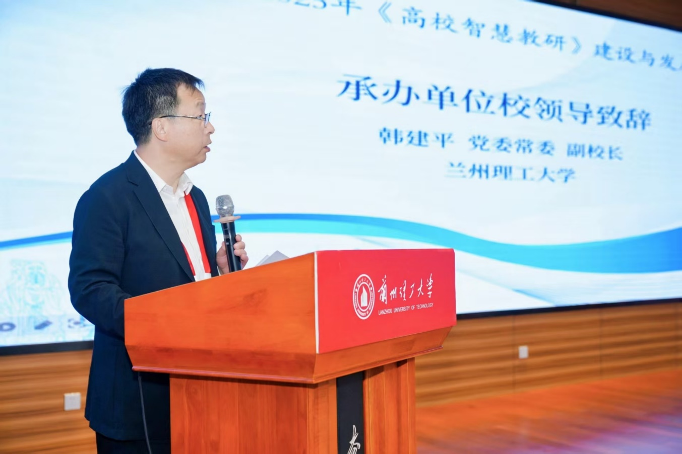 韩建平介绍了学校在数智校园建设方面的创新举措。他表示,学校正通过上线“兰小理”AI融合应用创新平台、布局虚拟教研室等系统推进数智校园建设,为人工智能时代高等教育变革探路。