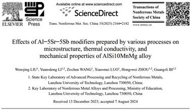 基于上述发现,团队构建了多熵-性能耦合模型,成功实现对AlSi10MnMg合金性能的准确预测,为高导热、高强铝合金的定向设计提供了理论依据。此外,团队优化了有效介质理论,引入晶界散射、固溶原子衰减及界面态密度等多物理场因素,建立起热导率预测新模型,其预测误差低于10%,显著提升了合金设计的精确性。在工艺研究方面,团队系统比较了金属型铸造、受控扩散凝固与轧制三种工艺所制备的Al–5Sr–5Sb变质剂对AlSi10MnMg合金组织与性能的影响,最终实现了强度与导热性的协同提升。该研究突破了铝合金“强度-导热”协同提升的技术瓶颈,形成了具有自主知识产权的新材料设计与制备技术体系。(图/文:李元东、周宏伟;审核:蒲瑞琛)